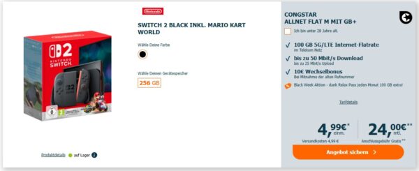 Starker Deal seitens LogiTel, dort bekommt ihr die Nintendo Switch 2 + 100GB 5G + Alles-Flat im Telekom-Netz für 24€/Monat – eff. 3,88€/Monat + 100GB extra jeden Monat ON TOP!