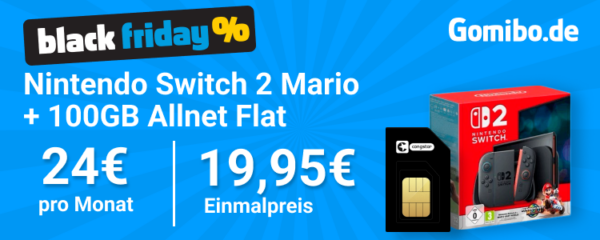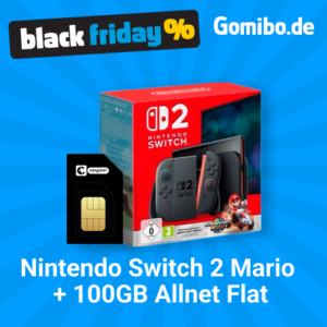 Zum Start in das Wochenende gibt es bei Gomibo die Nintendo Switch 2 MK Edition + 100GB 5G + Alles-Flat im Telekom-Netz für 24€/Monat