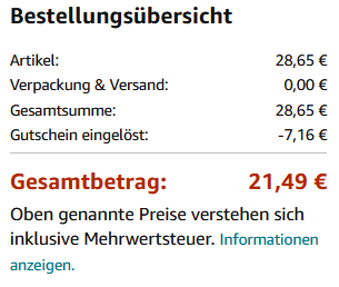 für 21,49€ (Vergleichspreis: ~29,99€) Ersparnis ~9€