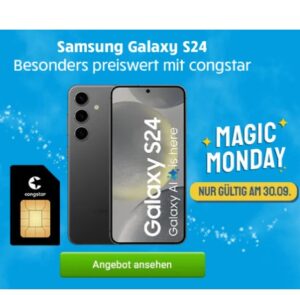 *NUR HEUTE* Samsung Galaxy S24 + 30GB LTE + Alles-Flat im Telekom-Netz für 22€/Monat – eff. 4,29€/Monat