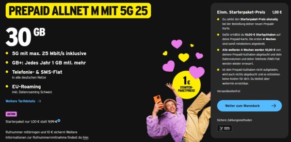 - Surfen: 30GB 5G Internet-Flatrate (Mit bis zu 25 MBit/s)