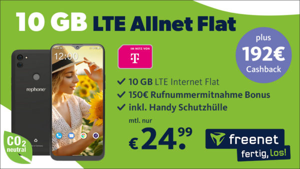 ⏰ *BIS 16 UHR* Rephone mit einer 10 GB LTE AllnetFlat im Telekom-Netz für eff. 4,99€/Monat