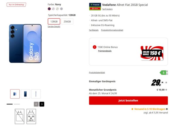 Fazit: Richtig krasser Deal seitens MediaMarkt mit dem beliebten Galaxy S25 im Vodafone-Netz, zusätzlich gibt es noch einen 150€ Online Bonus!