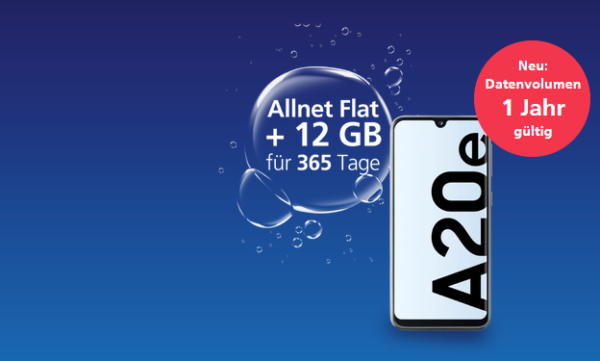 Samsung Galaxy A20e + Allnet-Flat für 1 Jahr + 12GB für 146,21€