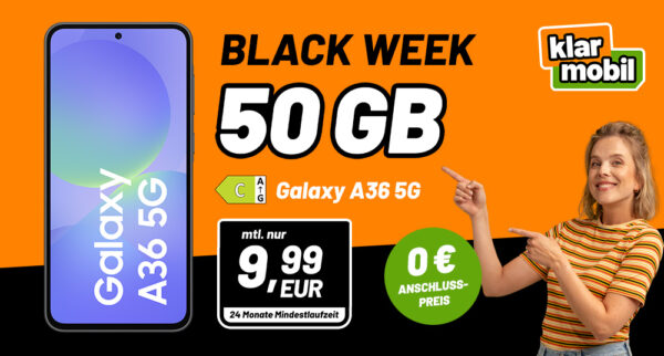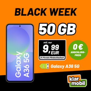 Bei klarmobil bekommt ihr das Samsung Galaxy A36 5G + 50GB 5G + Alles-Flat im Vodafone-Netz für 9,99€/Monat