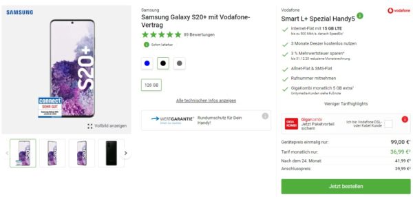 Fazit: Hier bekommt ihr das Samsung Galaxy S20+ inkl. 15 GB LTE und Alles-Flat im Vodafone-Netz für effektiv 14,11€/Monat