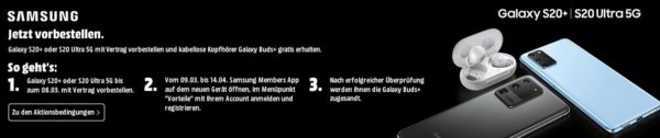 - Das S20+ oder das S20 Ultra 5G vorbestellen (vom 11.02.-08.03.20)
