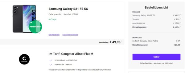 Fazit: Wenn es das Samsung Galaxy S21 FE inkl. Tarif im Telekom-Netz sein darf, könnte das Angebot genau das richtige für euch sein.