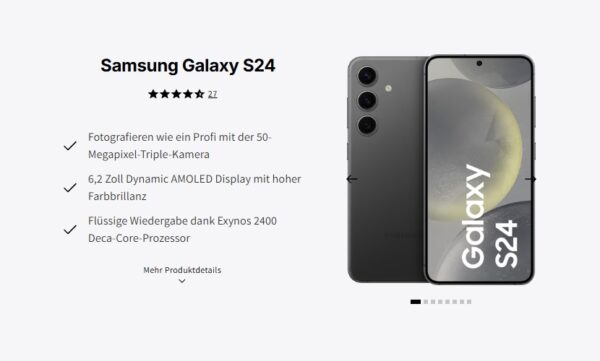 Bei DeinHandy gibt es gerade das Samsung Galaxy S24 + Congstar AllnetFlat M mit 35 GB LTE für eff. 4,79€/Monat. 🙂