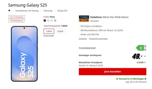 Fazit: Schöner Deal mit dem Samsung Galaxy S25 im Vodafone-Netz, bei Interesse sollte man hier zeitnah zuschlagen.