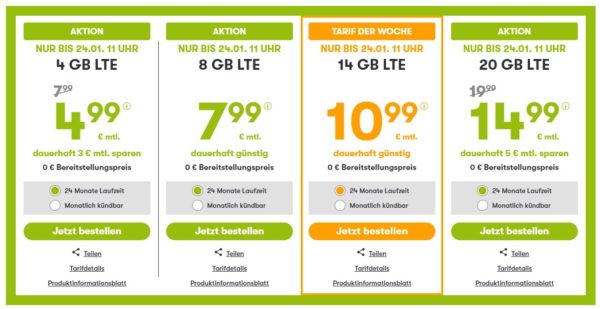 Alternativ bekommt ihr auch 4GB für 4,99€/Monat, 14GB für 10,99€/Monat oder 20GB für 14,99€/Monat
