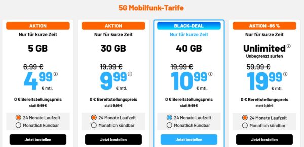 - 5GB 5G Allnet-Flat für 4,99€/Monat