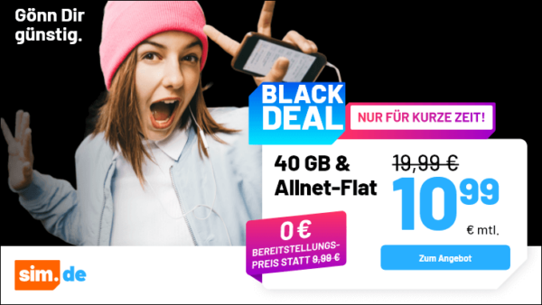 sim.de hat nun auch seine Black Week Angebote gestartet, checkt doch gleich mal die Aktionstarife.