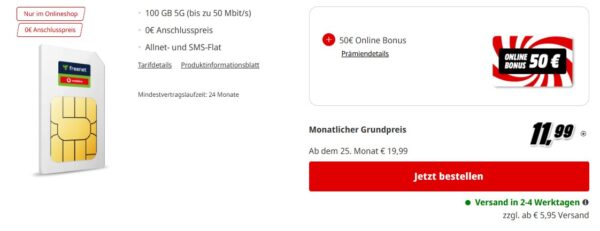 - Surfen: 100GB 5G Internet-Flatrate (Mit bis zu 50 MBit/s)