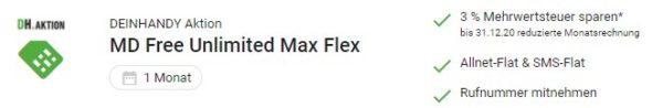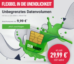 Auf der Suche nach einen SIM-Only Tarif? Bei DeinHandy bekommt ihr den MD Free Unlimited Max Flex (unlimitiertes Datenvolumen + Alles-Flat) im o2-Netz für 29,99€/Monat (Monatlich kündbar).