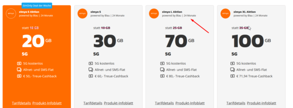 - Simyo 70 GB 5G: 8,99€ mtl. + 80€ Cashback (rechnerisch 6 Monate gratis + Gewinn!)
