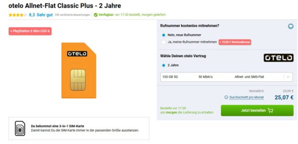 Starker Deal seitens Gomibo, dort bekommt ihr die Sony PlayStation 5 Digital Edition + 100GB 5G + Alles-Flat im Vodafone-Netz für 24,99€/Monat