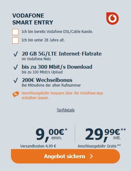 - – 39,99€ Erstattung des Anschlusspreis via Vodafone-App