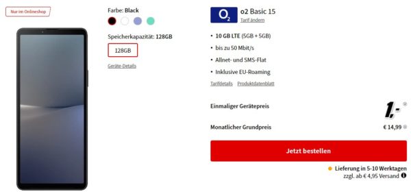 Sony Xperia 10 V + 10GB LTE + Alles-Flat im o2-Netz für 14,99€/Monat