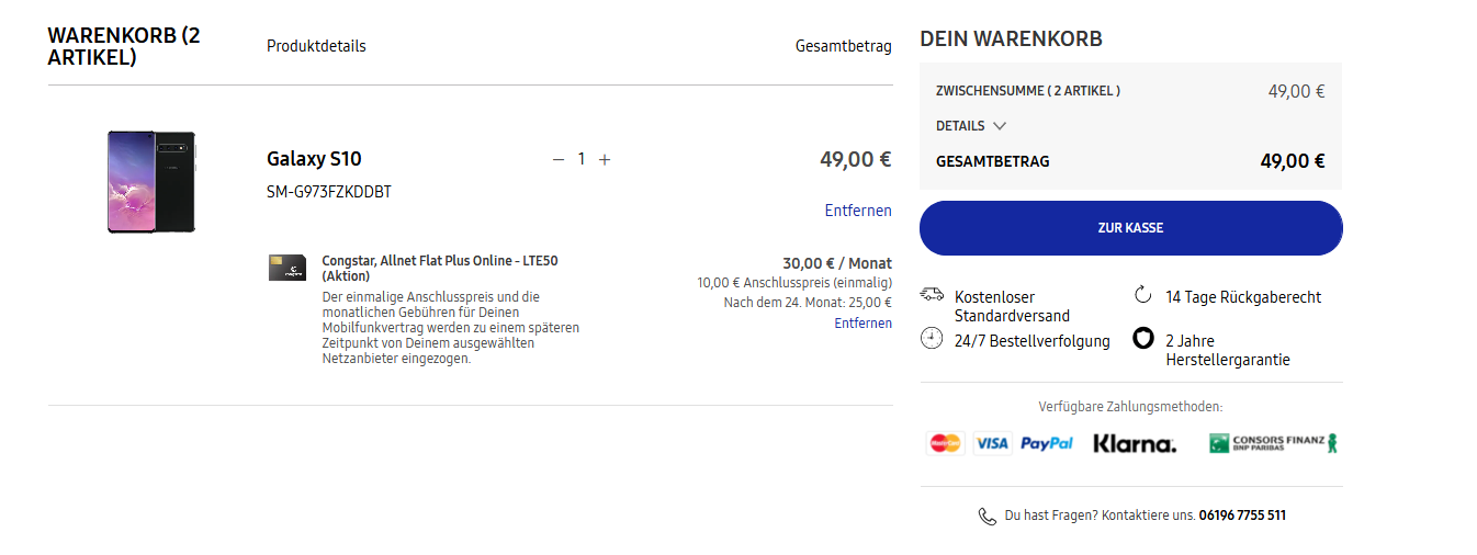 Klaus0815 (Gast) 26.11.2019, 06:55 #Wenn ich den Congstar Vertrag in den Warenkorb lege steht da 30 Euro pro Monat, 25 Euro nach dem 24. Monat.