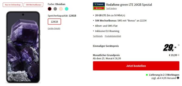 *TARIF EFF. GRATIS* Google Pixel 8 + 20GB LTE + Alles-Flat im VF-Netz für 19,99€/Monat + 50€ Bonus