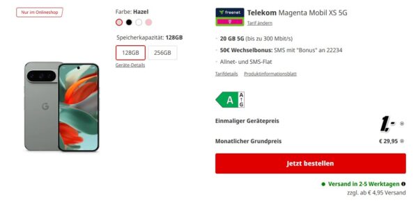 *TARIF EFF. GRATIS* Google Pixel 9 Pro + 20GB 5G + Alles-Flat im Telekom-Netz für 29,95€/Monat