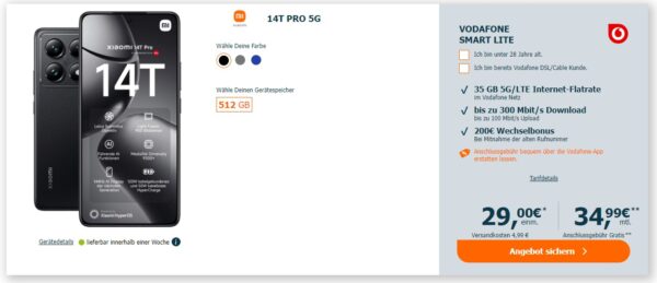 *TARIF EFF. GRATIS* Xiaomi 14T PRO 5G + 35GB LTE/5G + Alles-Flat im VF-Netz für 34,99€/Monat + 200€ Bonus
