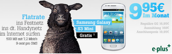 - Tele2 Allnet-Flat im E-Plus Netz mit 500MB für 9,95€/Monat + 19,95€ Anschlussgebühr + gratis S3 Mini im Wert von ~125€