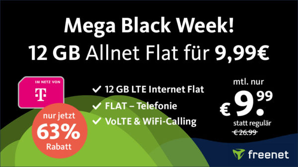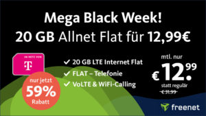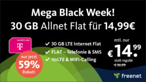 Auch freenet startet nun mit seinen Angeboten in die Black Week, dort bekommt ihr jetzt die beliebten Tarife im Telekom-Netz