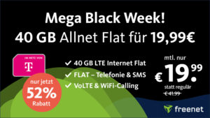 *ENDET HEUTE TELEKOM* freenet Black Week – 12GB LTE + Telefon-Flat für 9,99€ // 20GB LTE für 12,99€ // 30GB LTE 14,99€ // 40GB LTE für 19,99€