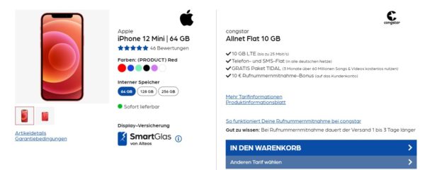 - Apple iPhone 12 Mini mit 164€ Zuzahlung