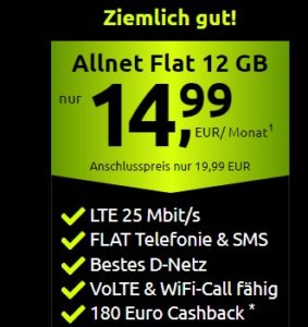 Crash 12 GB LTE Allnet Flat im Telekom-Netz für nur 14,99€ – eff. 8,32€/Monat