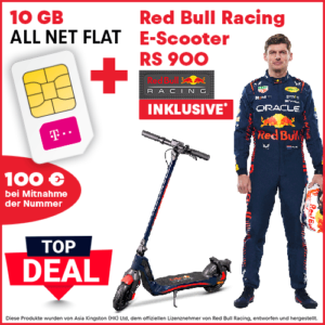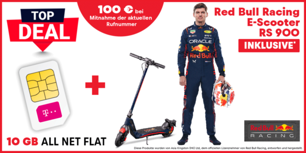 *TIPP* Red Bull Racing E-Scooter RS900 + 10 GB LTE + Telefon-Flat im Telekom-Netz für 34,99€/Monat – eff. 5,91€/Monat