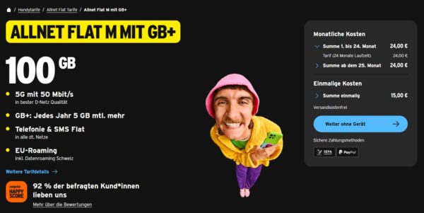 Fazit: Für alle, die ein ordentliches Datenvolumen suchen und sich nicht für eine bestimmte Zeit binden wollen, könnte das Angebot genau das richtige sein.