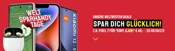 - Google Pixel 7 für 49€ + 20GB LTE/5G für 23,99€ mtl.