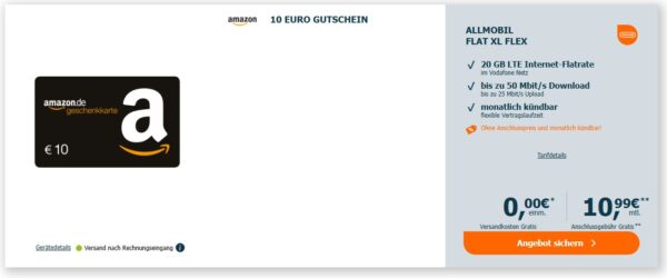 *TOP* 20GB LTE + Allnet-Flat im VF-Netz für eff. 0,99€ – dank 10€ Amazon Gutschein* (mtl. kündbar)