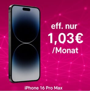*TOP* Apple iPhone 16 Pro Max (256GB) + 30GB 5G + Alles-Flat im Telekom-Netz für 39,95€/Monat – eff. 1,03€/Monat
