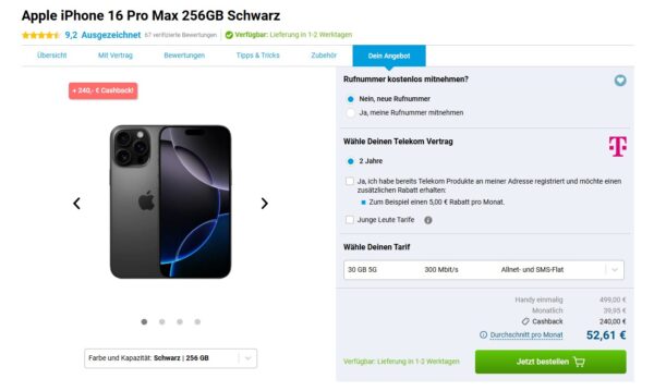 Fazit: Richtig stark für alle, die das iPhone 16 Pro Max inkl. Tarif im Telekom-Netz suchen.