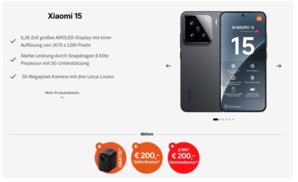 Ihr sucht ein leistungsstarkes Top-Smartphone? Dann solltet ihr euch das neue Xiaomi 15 genauer ansehen. Bei deinhandy gibt es das Flaggschiff aktuell im Vodafone Smart Lite Spezial-Tarif. Das Angebot ist auf jeden Fall einen Blick wert – vor allem, weil ihr zusätzlich einen gratis Projektor dazu bekommt.