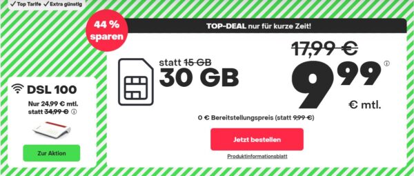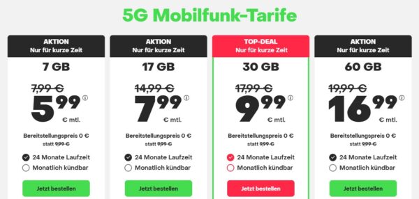 - 30 GB 5G AllnetFlat für 9,99€/Monat