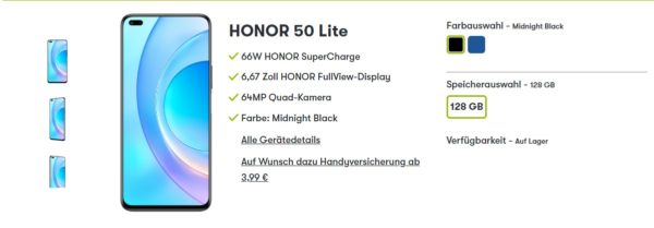 Fazit: Hier bekommt ihr das Honor 50 Lite für 49,99€ + 4 GB LTE + Alles-Flat im o2-Netz für effektiv 2,53€/Monat