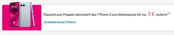 Zum Jahrespaket gibt’s aktuell das T Phone 3 für nur 3€. Für ein Gerät im Wert von ~129€ ein absoluter No-Brainer.