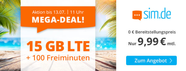 Denn bei sim.de bekommt ihr die 15 GB LTE + 100 Freiminuten für 9,99€/Monat.