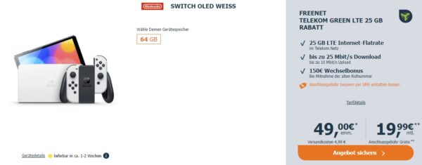*TOP* Nintendo Switch OLED + 25 GB LTE AllnetFlat (Telekom) für eff. 2,70€/Monat