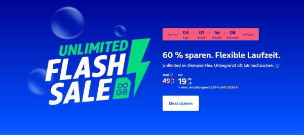 Was für ein Knaller! 💥 Für alle, die viel Datenvolumen benötigen und sich nicht unbedingt lange binden möchten, bei o2 bekommt ihr den o2 Mobile Unlimited on Demand Flex (5G, bis zu 300 MBit/s, Allnet-Flat) für 19,99€/Monat
