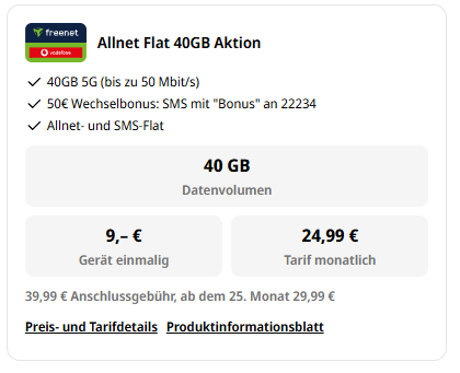 - 📶 Tarif: Allnet Flat 40GB Aktion im Netz von Vodafone