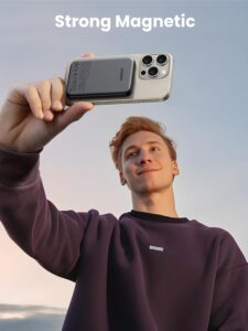 - Snap & Charge für iPhone 12-16 Serie: Mit einem starken Magneten lässt sich diese magnetische Powerbank sicher an der Rückseite Ihres iPhone 15 Pro Max (15,99*7,67*0,825 cm) befestigen, so dass Sie mit einer Hand Videoanruf führen oder Selfies machen können