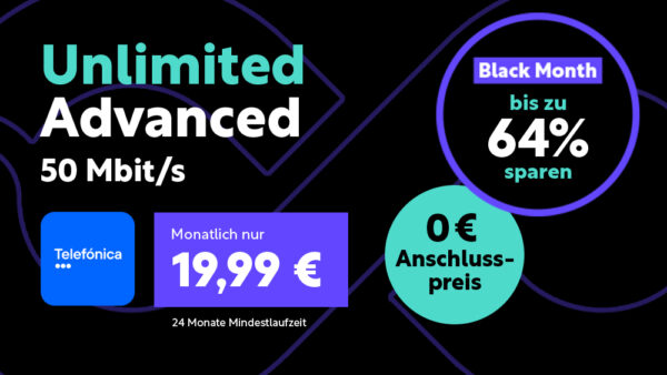 👉 14,99€/Monat | flexibel(AP 29,99€) oder 24M (AP 9,99€) - Unlimited Advanced – 50 Mbit/s