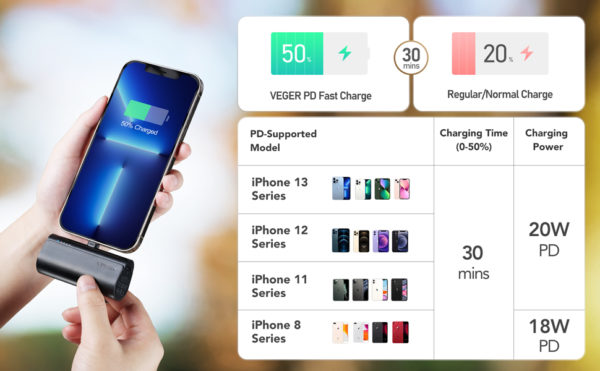 VEGER Externer Akku für iPhone mit 5000 mAh für 10,40€