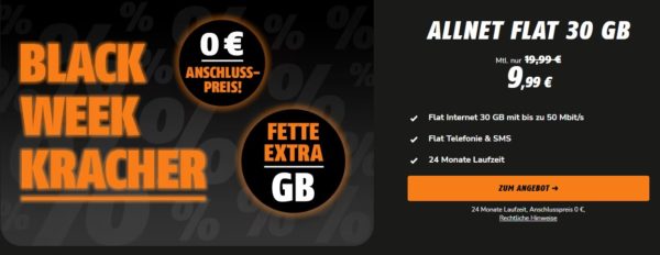 Krasses Angebot von klarmobil zum Start in den Black Friday, jetzt gibt es einen richtigen Knaller im Vodafone-Netz die mtl. kündbare 30GB LTE Allnet-Flat für 9,99€ Monat // 40GB LTE für 14,99€ // 50GB LTE für 19,99€/Monat